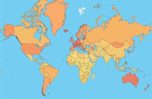 Constructing an interactive dashboard using Tableau, furthering the Covid data exploration. Included creating a colour coded map with darker colours showing the countries with a higher percentage of people infected.
